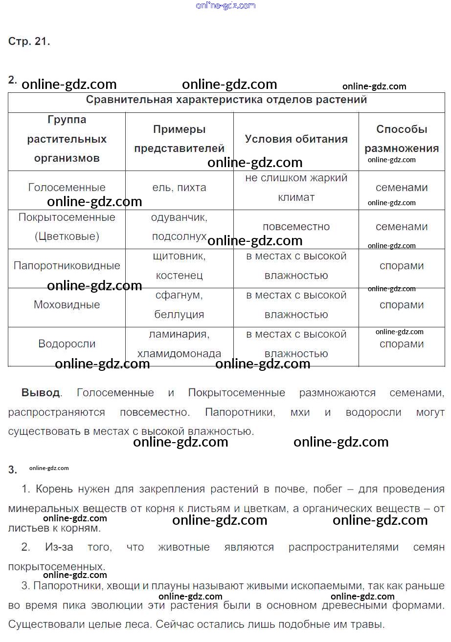 Готовые домашние задания по Биологии за 6 класс Рабочая тетрадь Пономарева, Корнилова Алгоритм успеха 2020 - Часть 2. Страницы 21