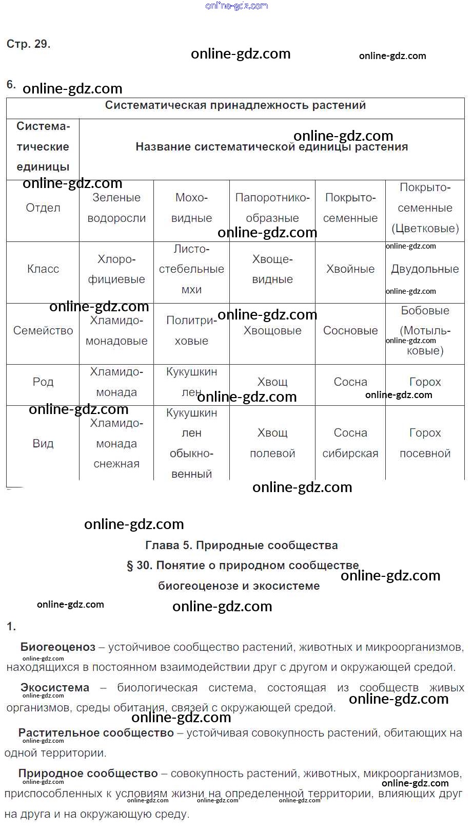 Готовые домашние задания по Биологии за 6 класс Рабочая тетрадь Пономарева, Корнилова Алгоритм успеха 2020 - Часть 2. Страницы 29