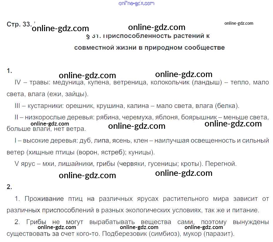 Готовые домашние задания по Биологии за 6 класс Рабочая тетрадь Пономарева, Корнилова Алгоритм успеха 2020 - Часть 2. Страницы 33