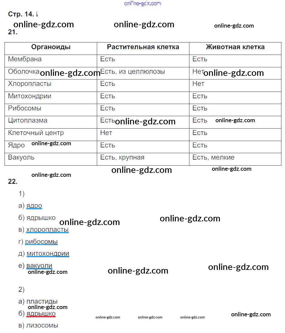 Готовые домашние задания по Биологии за 6 класс Рабочая тетрадь Сонин Живой организм 2017 - Страницы 14