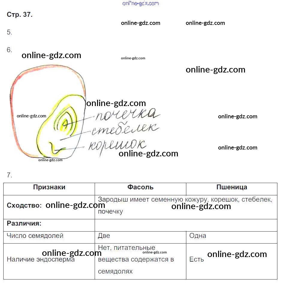 Готовые домашние задания по Биологии за 6 класс Рабочая тетрадь Сонин Живой организм 2017 - Страницы 37