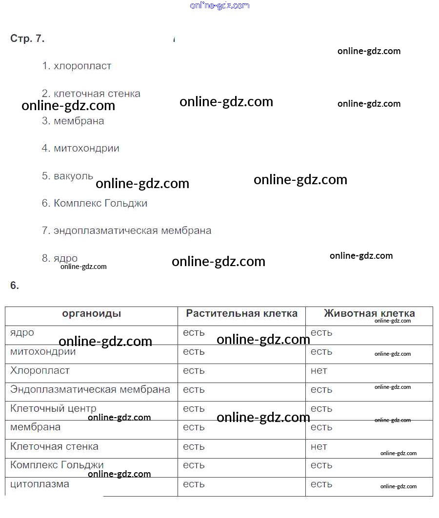 Готовые домашние задания по Биологии за 6 класс Рабочая тетрадь Сонин Живой организм 2020 - Страницы 7