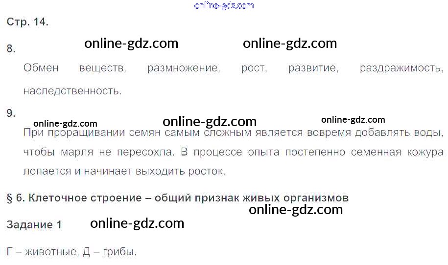 Готовые домашние задания по Биологии за 5, 6 класс Рабочая тетрадь Сухова, Строганов Алгоритм успеха 2015 - Часть 1. Страницы 14