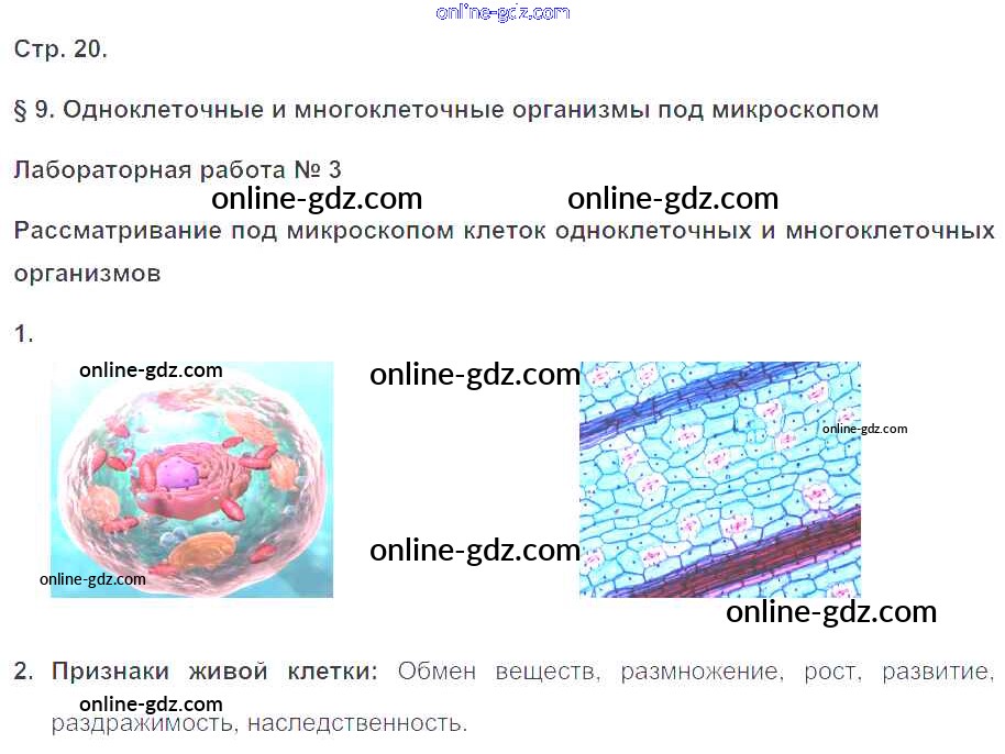 Готовые домашние задания по Биологии за 5, 6 класс Рабочая тетрадь Сухова, Строганов Алгоритм успеха 2015 - Часть 1. Страницы 20