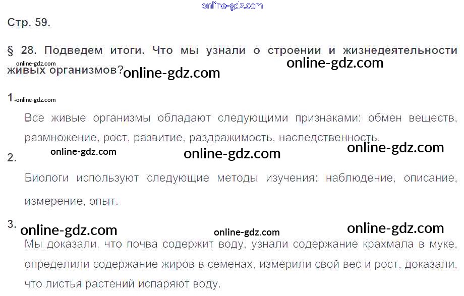 Готовые домашние задания по Биологии за 5, 6 класс Рабочая тетрадь Сухова, Строганов Алгоритм успеха 2015 - Часть 1. Страницы 59