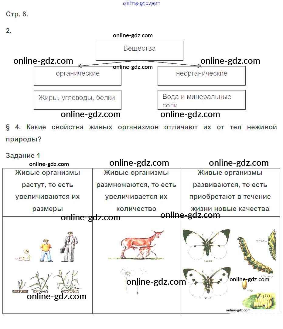 Готовые домашние задания по Биологии за 5, 6 класс Рабочая тетрадь Сухова, Строганов Алгоритм успеха 2015 - Часть 1. Страницы 8