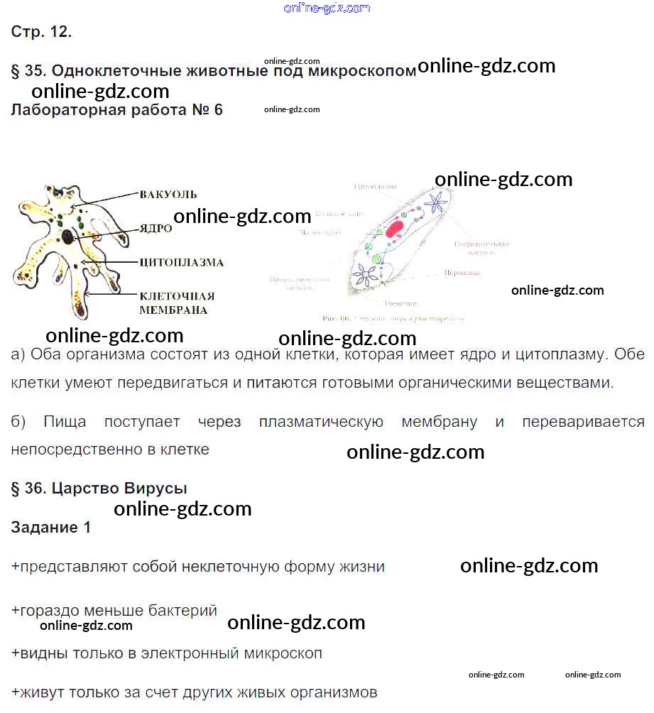 Готовые домашние задания по Биологии за 5, 6 класс Рабочая тетрадь Сухова, Строганов Алгоритм успеха 2015 - Часть 2. Страницы 12