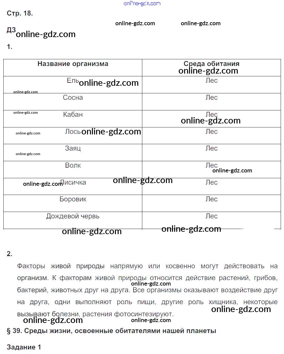 Готовые домашние задания по Биологии за 5, 6 класс Рабочая тетрадь Сухова, Строганов Алгоритм успеха 2015 - Часть 2. Страницы 18