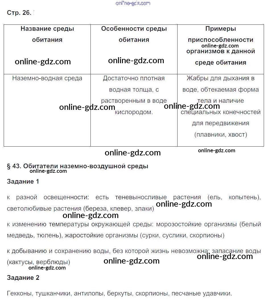 Готовые домашние задания по Биологии за 5, 6 класс Рабочая тетрадь Сухова, Строганов Алгоритм успеха 2015 - Часть 2. Страницы 26