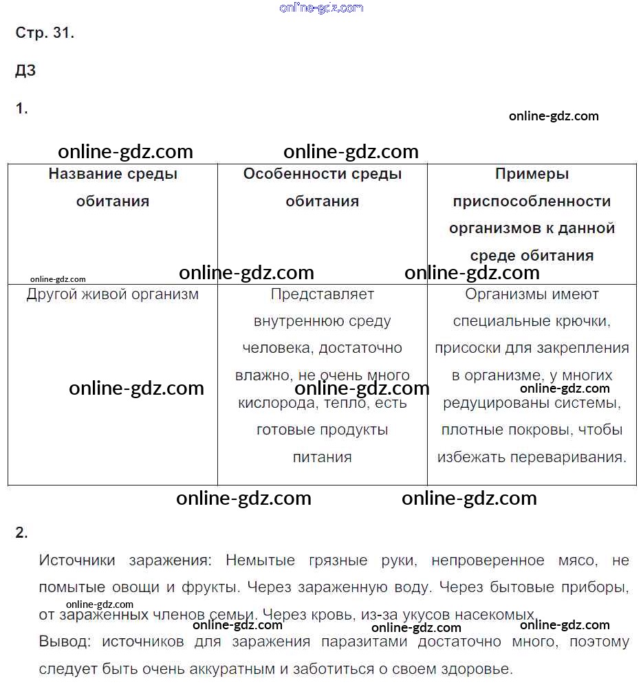 Готовые домашние задания по Биологии за 5, 6 класс Рабочая тетрадь Сухова, Строганов Алгоритм успеха 2015 - Часть 2. Страницы 31