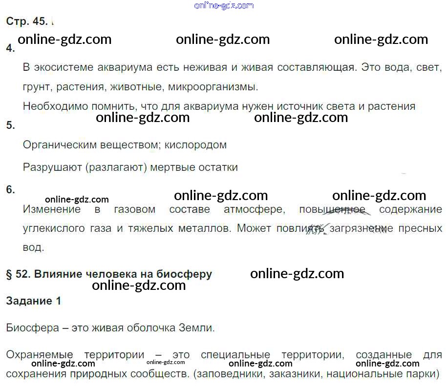 Готовые домашние задания по Биологии за 5, 6 класс Рабочая тетрадь Сухова, Строганов Алгоритм успеха 2015 - Часть 2. Страницы 45