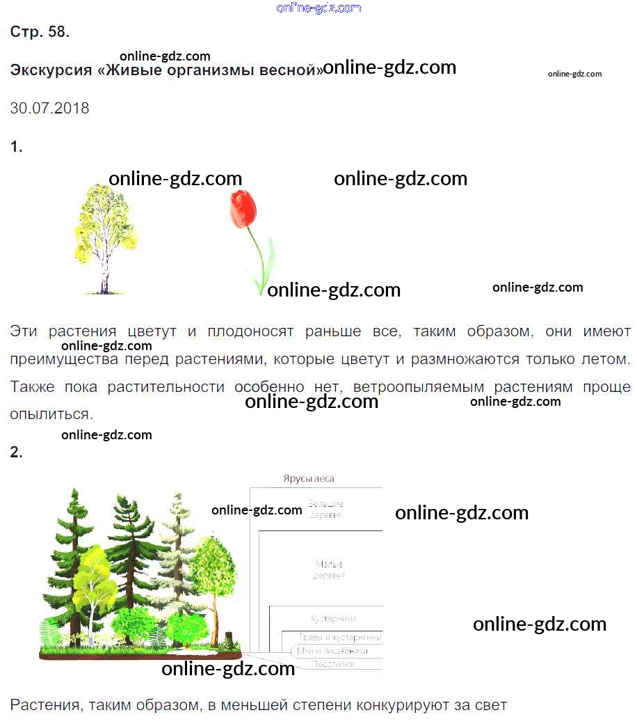 Готовые домашние задания по Биологии за 5, 6 класс Рабочая тетрадь Сухова, Строганов Алгоритм успеха 2015 - Часть 2. Страницы 58
