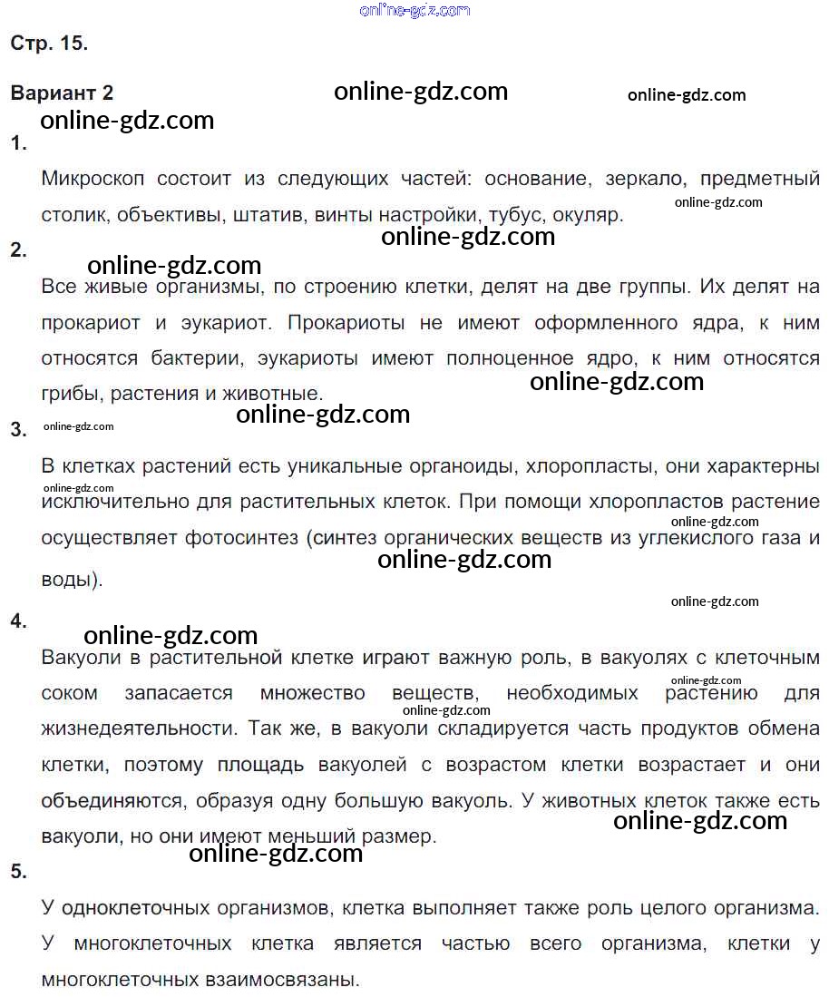 Готовые домашние задания по Биологии за 5, 6 класс Тетрадь-экзаменатор Сухорукова, Кучменко Сферы 2017 - Страницы 15