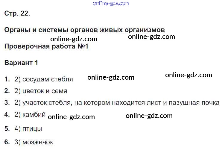 Готовые домашние задания по Биологии за 5, 6 класс Тетрадь-экзаменатор Сухорукова, Кучменко Сферы 2017 - Страницы 22