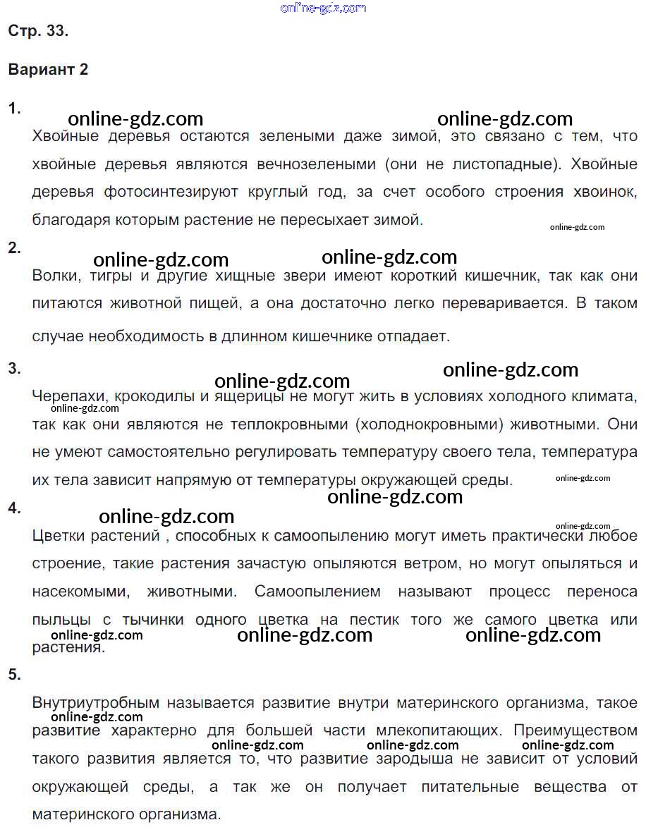 Готовые домашние задания по Биологии за 5, 6 класс Тетрадь-экзаменатор Сухорукова, Кучменко Сферы 2017 - Страницы 33