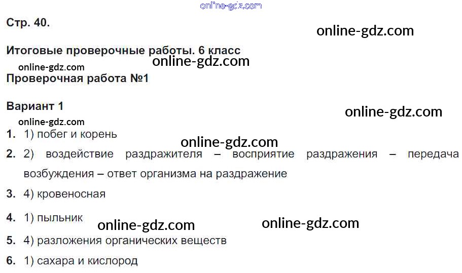 Готовые домашние задания по Биологии за 5, 6 класс Тетрадь-экзаменатор Сухорукова, Кучменко Сферы 2017 - Страницы 40