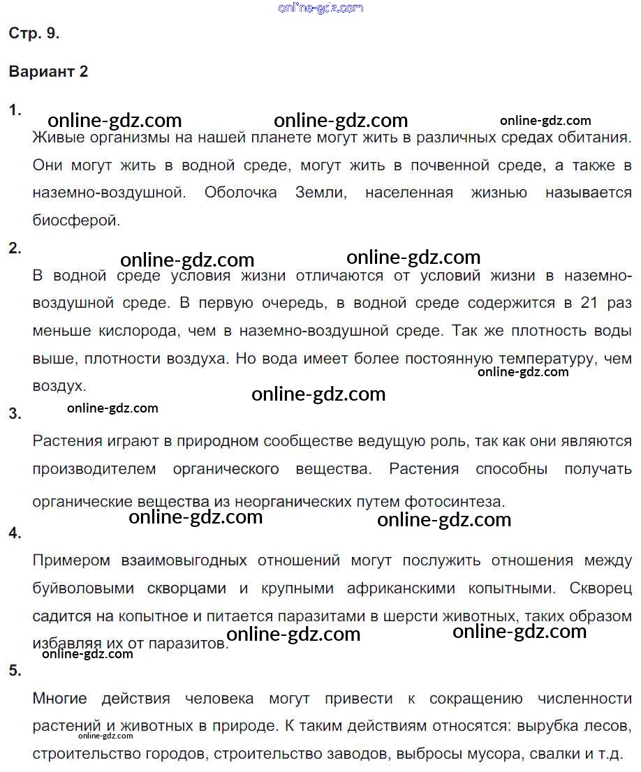 Готовые домашние задания по Биологии за 5, 6 класс Тетрадь-экзаменатор Сухорукова, Кучменко Сферы 2017 - Страницы 9
