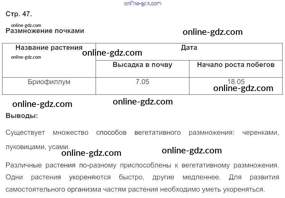 Готовые домашние задания по Биологии за 5, 6 класс Тетрадь-практикум Сухорукова, Кучменко Сферы 2019 - Страницы 47