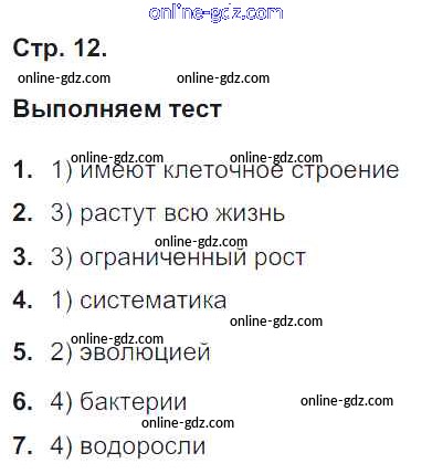 Готовые домашние задания по Биологии за 5, 6 класс Тетрадь-тренажер Сухорукова, Кучменко Сферы 2016 - Часть 1. Страницы 12