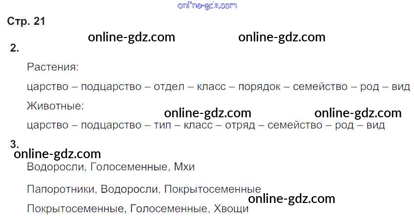 Готовые домашние задания по Биологии за 5, 6 класс Тетрадь-тренажер Сухорукова, Кучменко Сферы 2016 - Часть 1. Страницы 21
