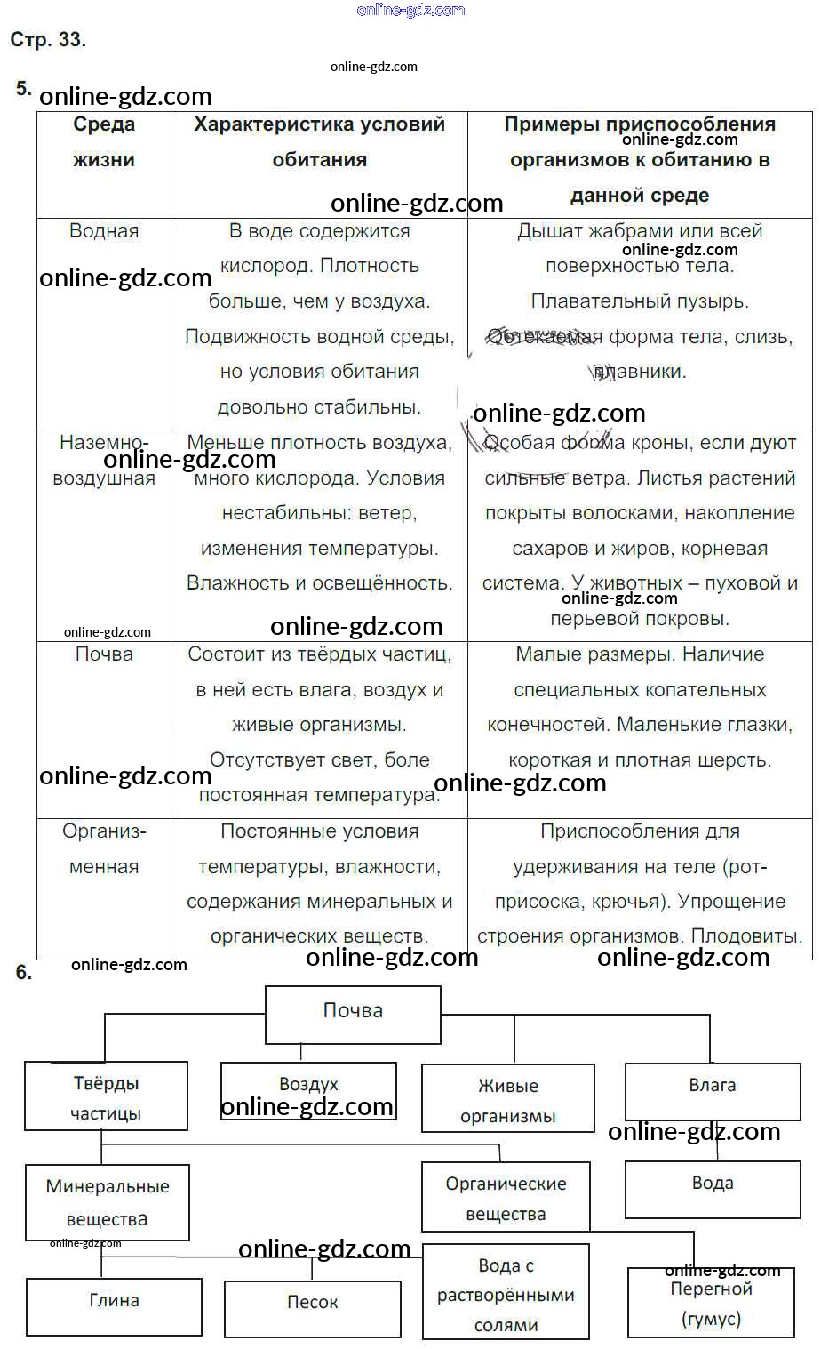 Готовые домашние задания по Биологии за 5, 6 класс Тетрадь-тренажер Сухорукова, Кучменко Сферы 2016 - Часть 1. Страницы 33