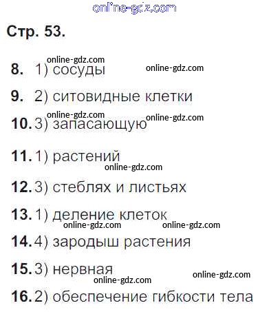 Готовые домашние задания по Биологии за 5, 6 класс Тетрадь-тренажер Сухорукова, Кучменко Сферы 2016 - Часть 1. Страницы 53