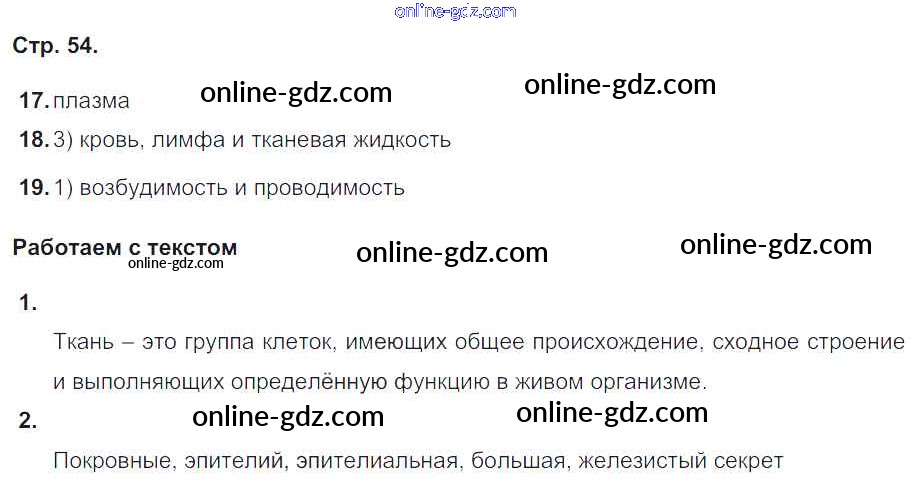 Готовые домашние задания по Биологии за 5, 6 класс Тетрадь-тренажер Сухорукова, Кучменко Сферы 2016 - Часть 1. Страницы 54