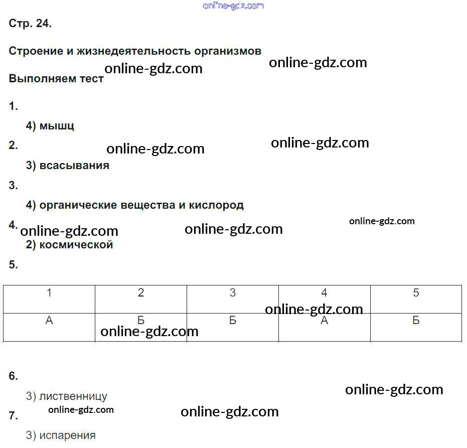 Готовые домашние задания по Биологии за 5, 6 класс Тетрадь-тренажер Сухорукова, Кучменко Сферы 2016 - Часть 2. Страницы 24