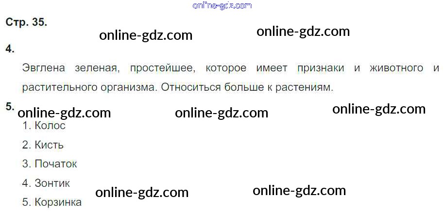 Готовые домашние задания по Биологии за 5, 6 класс Тетрадь-тренажер Сухорукова, Кучменко Сферы 2016 - Часть 2. Страницы 35