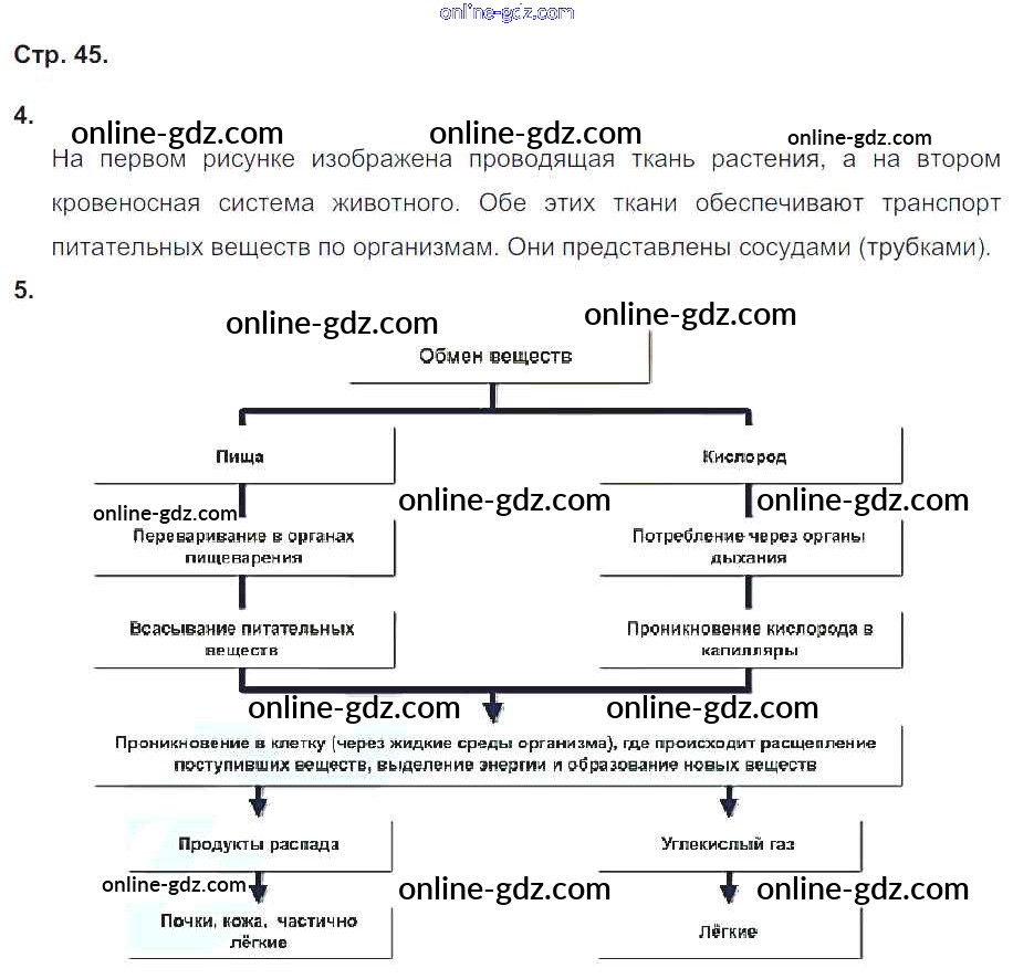 Готовые домашние задания по Биологии за 5, 6 класс Тетрадь-тренажер Сухорукова, Кучменко Сферы 2016 - Часть 2. Страницы 45