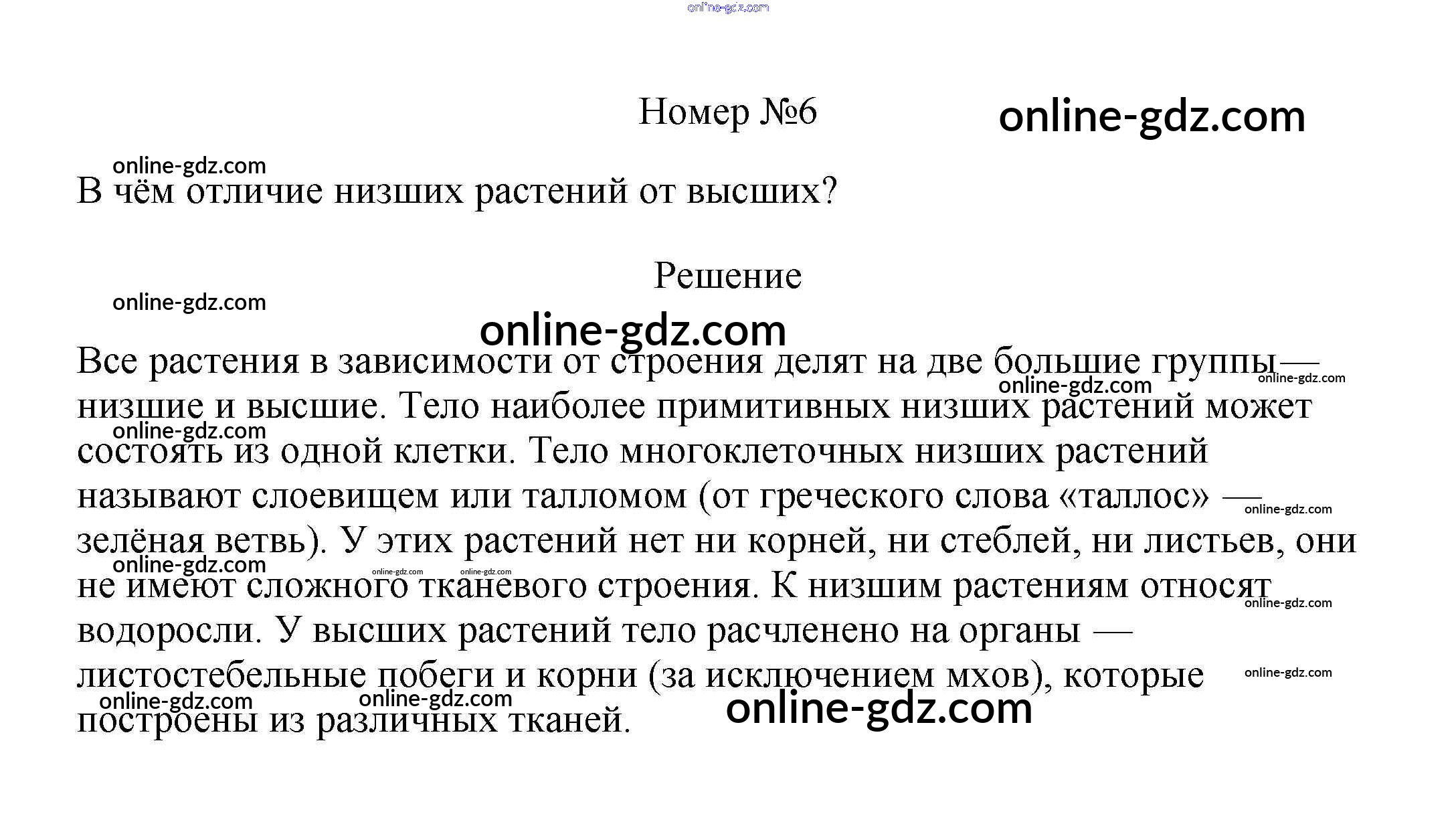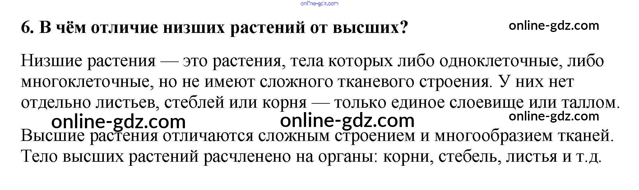 Готовые домашние задания по Биологии за 6 класс Учебник Пасечник Линейный курс 2020 - Вопросы §1. Разнообразие, распространение, значение растений 6