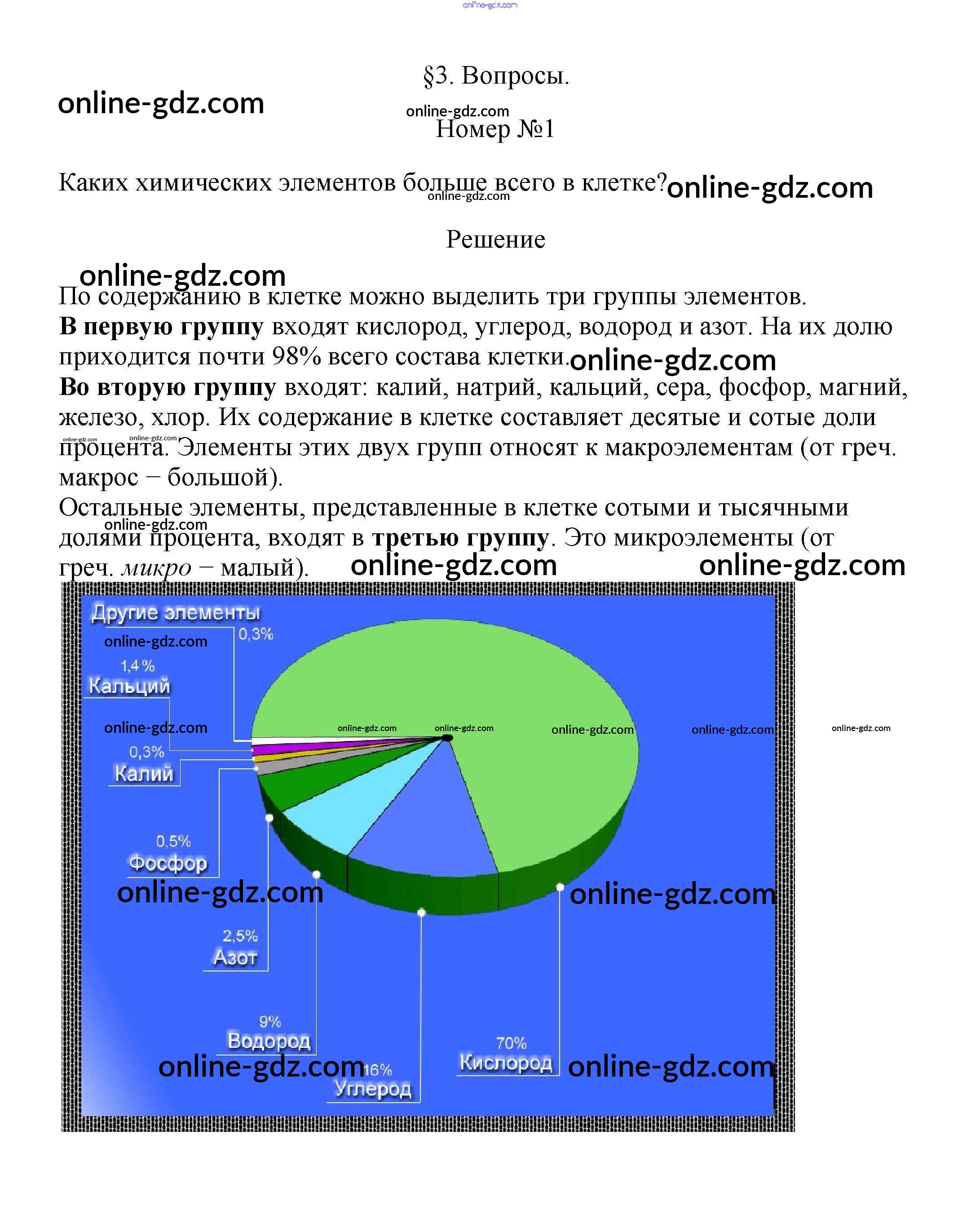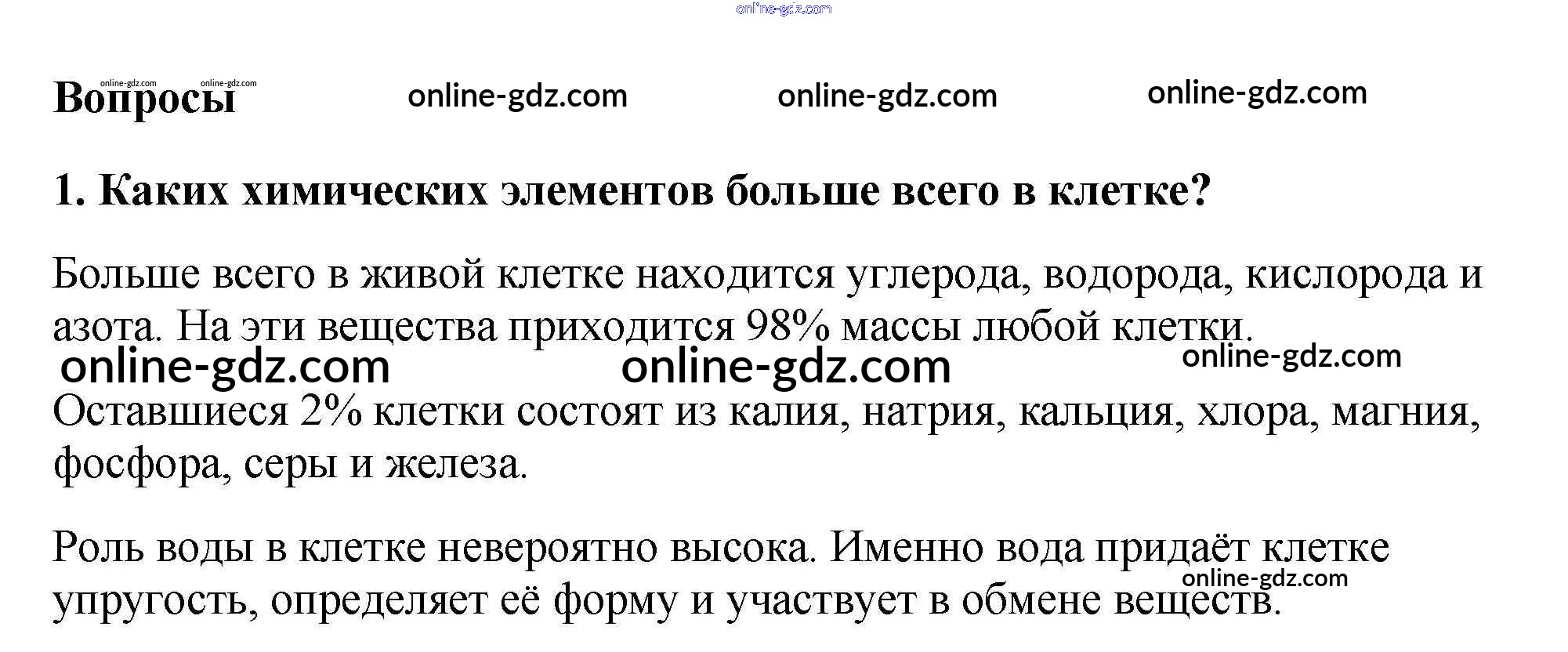 Готовые домашние задания по Биологии за 6 класс Учебник Пасечник Линейный курс 2020 - Вопросы §3. Химический состав клетки 1