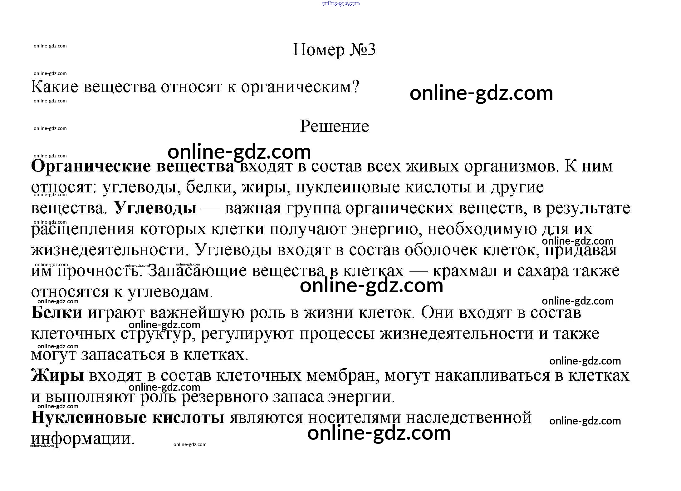 Готовые домашние задания по Биологии за 6 класс Учебник Пасечник Линейный курс 2020 - Вопросы §3. Химический состав клетки 3