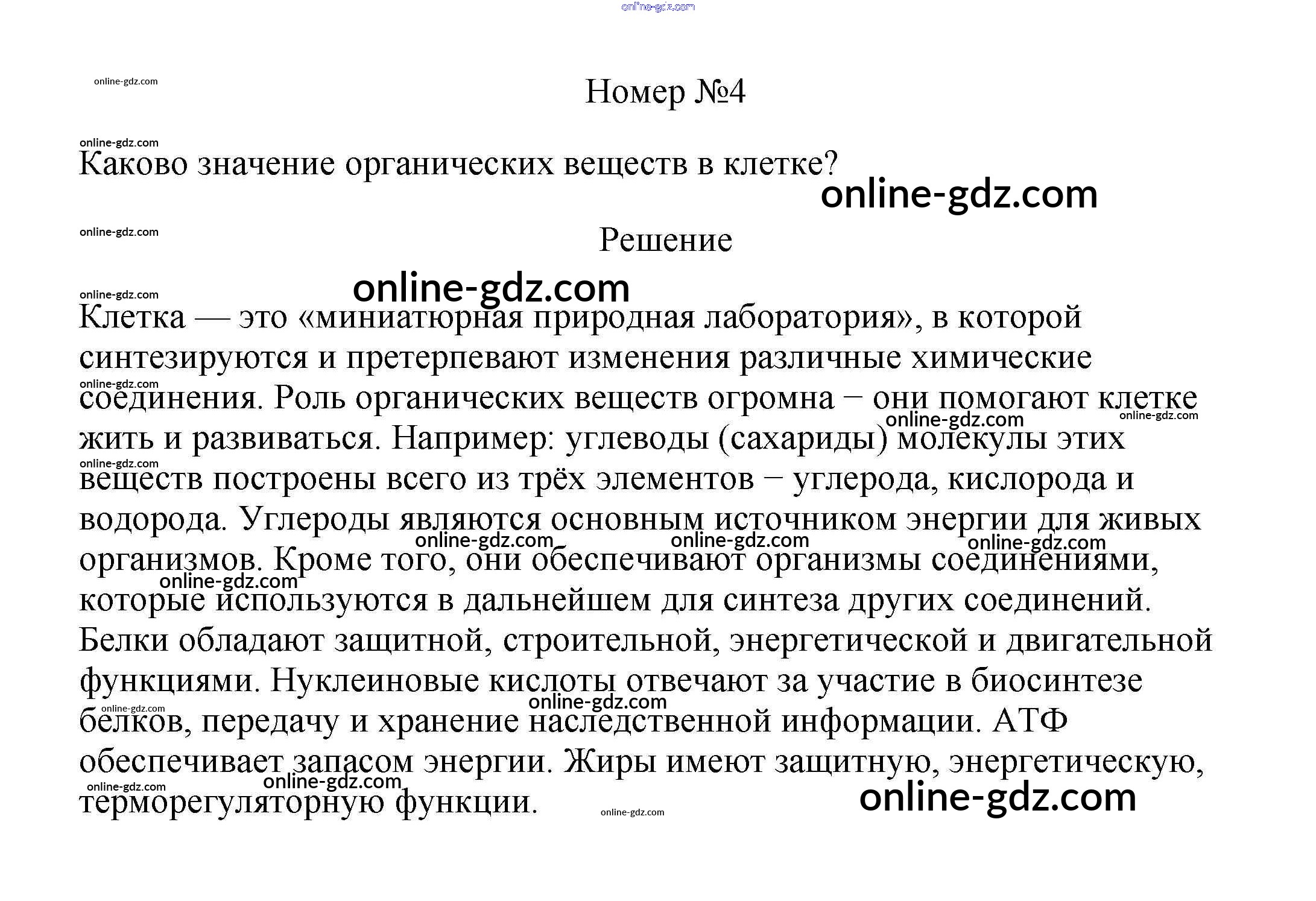 Готовые домашние задания по Биологии за 6 класс Учебник Пасечник Линейный курс 2020 - Вопросы §3. Химический состав клетки 4