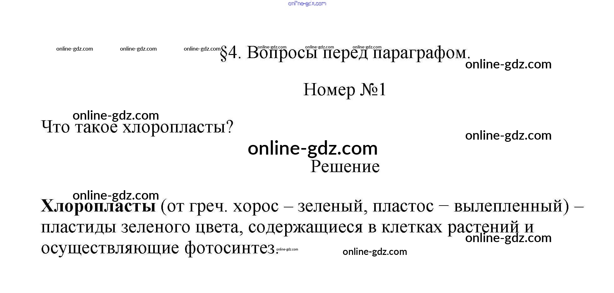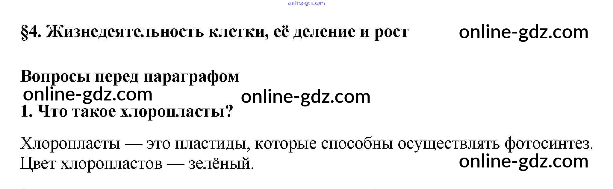Готовые домашние задания по Биологии за 6 класс Учебник Пасечник Линейный курс 2020 - Вопросы перед параграфом §4. Жизнедеятельность клетки, её деление и рост 1