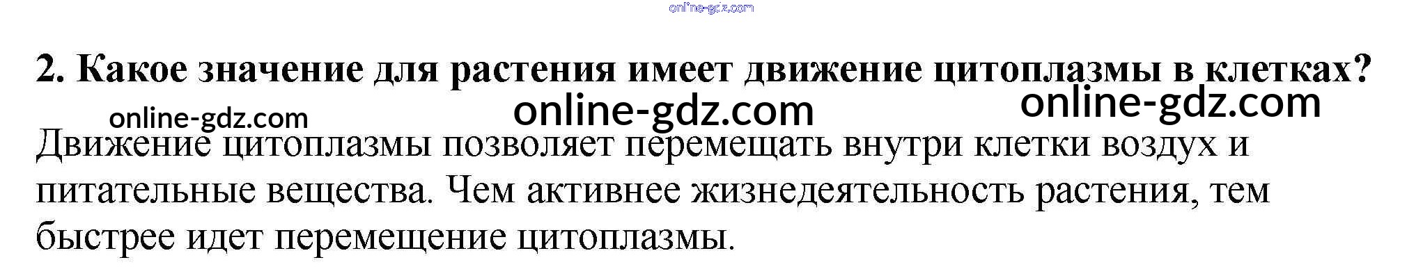 Готовые домашние задания по Биологии за 6 класс Учебник Пасечник Линейный курс 2020 - Вопросы §4. Жизнедеятельность клетки, её деление и рост 2