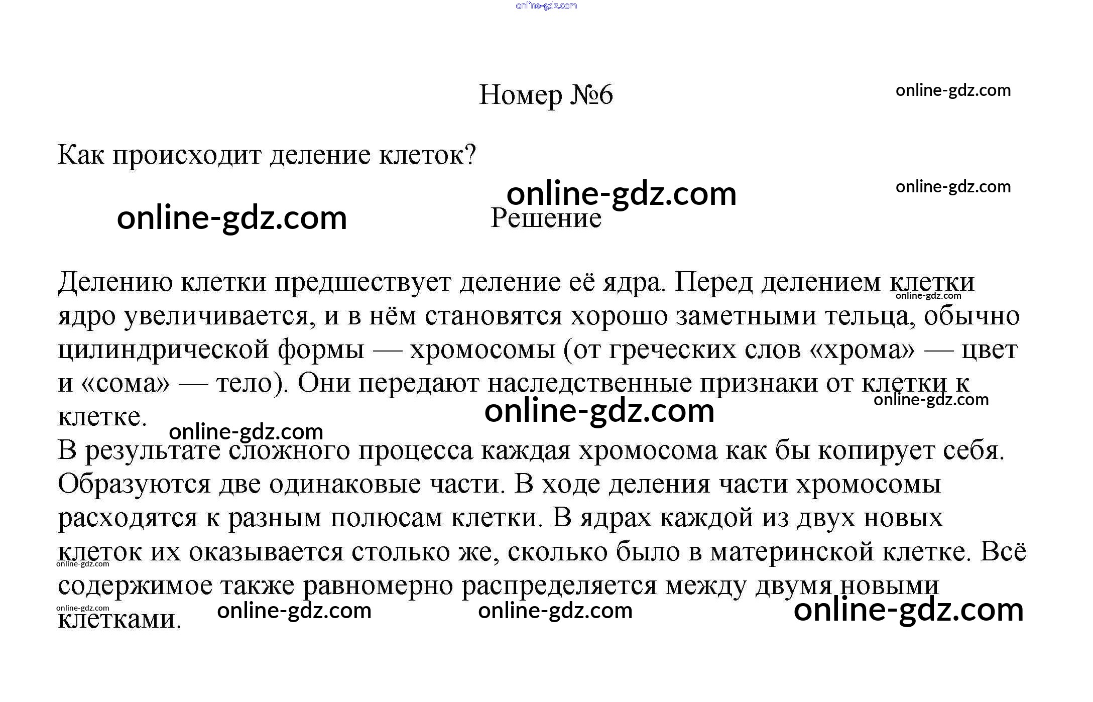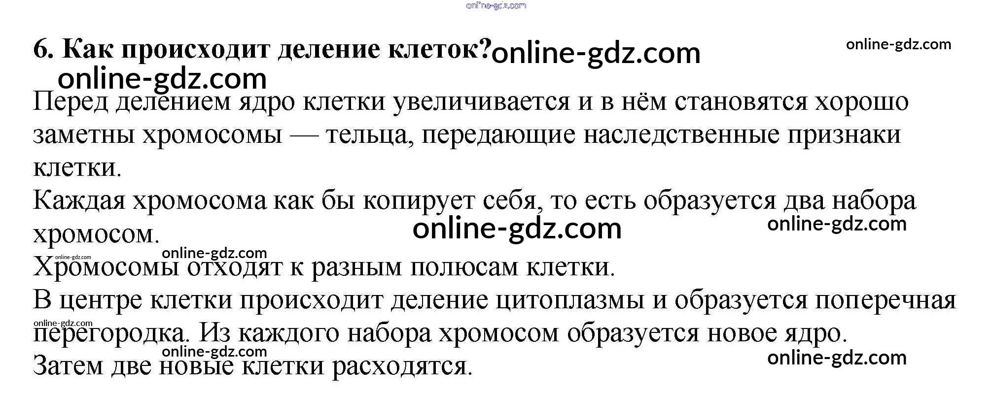 Готовые домашние задания по Биологии за 6 класс Учебник Пасечник Линейный курс 2020 - Вопросы §4. Жизнедеятельность клетки, её деление и рост 6
