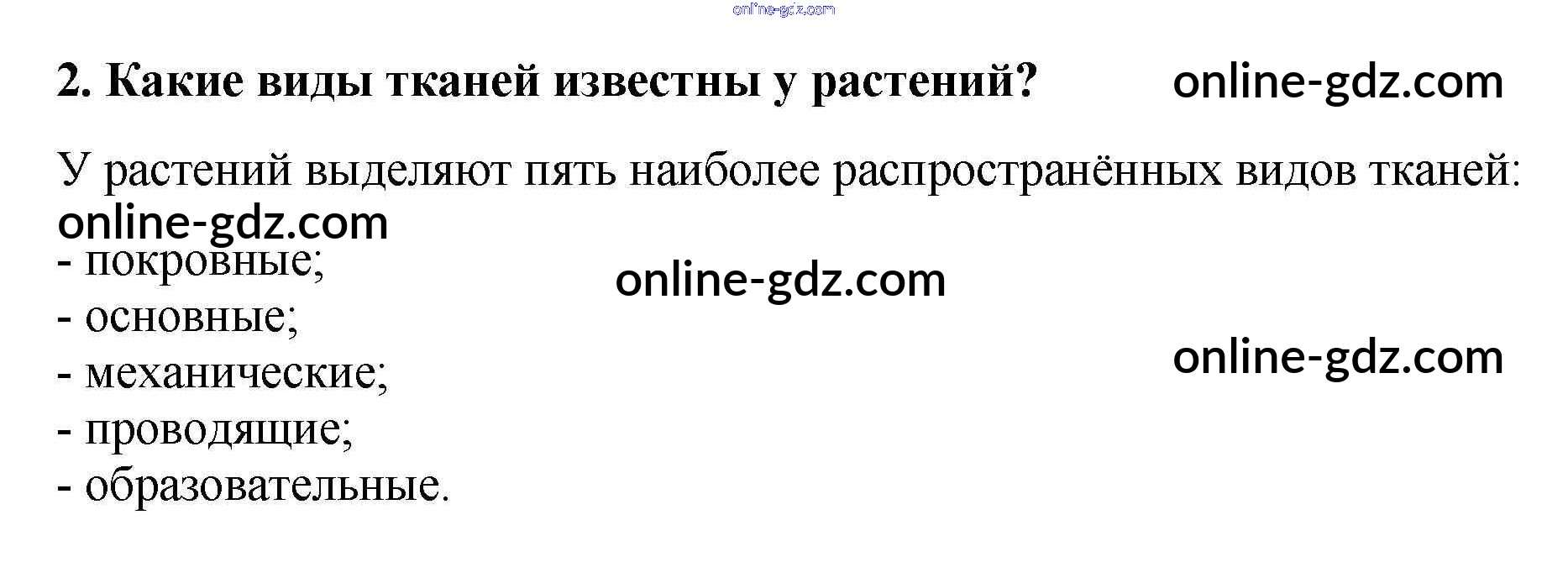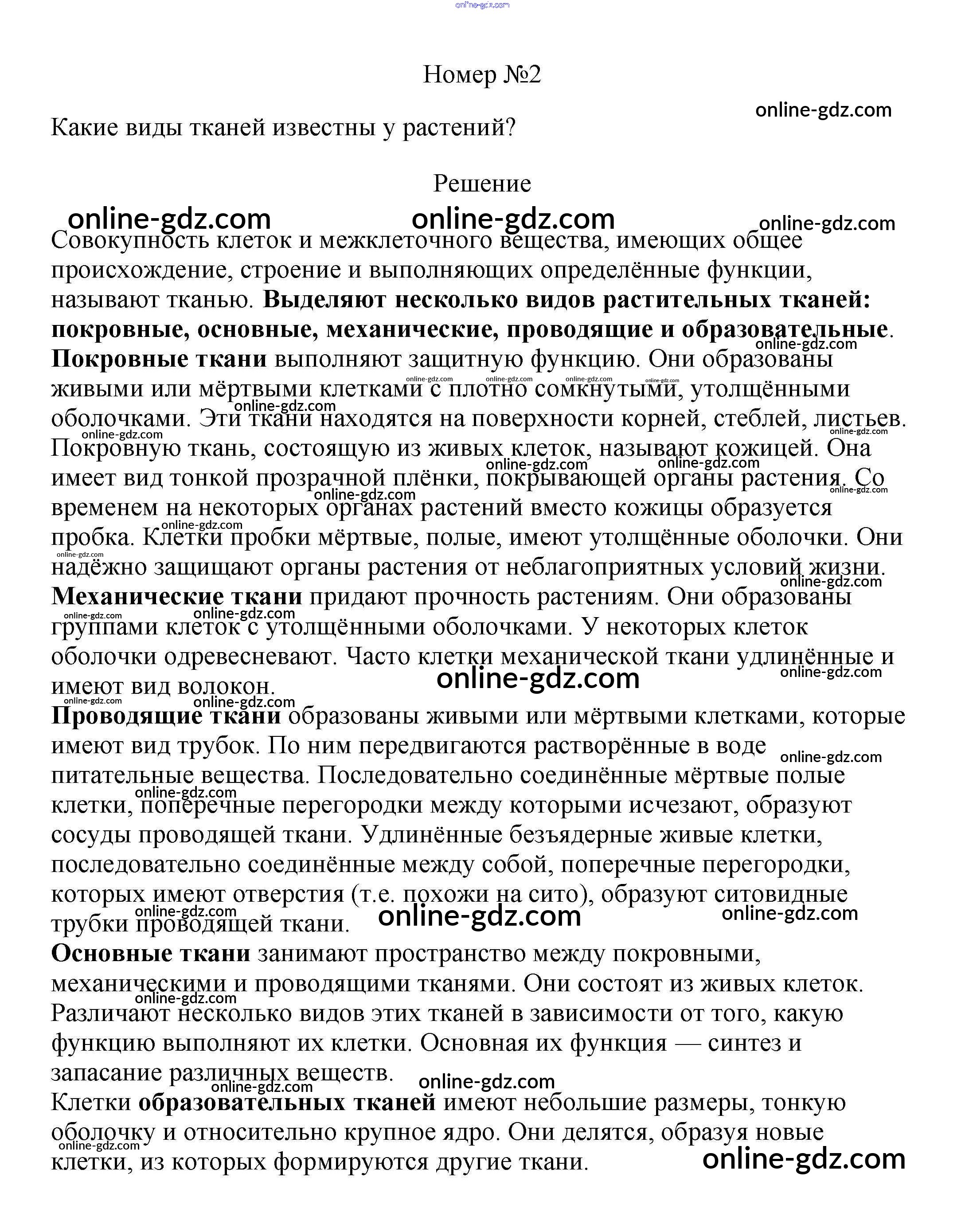 Готовые домашние задания по Биологии за 6 класс Учебник Пасечник Линейный курс 2020 - Вопросы §5. Ткани растений 2