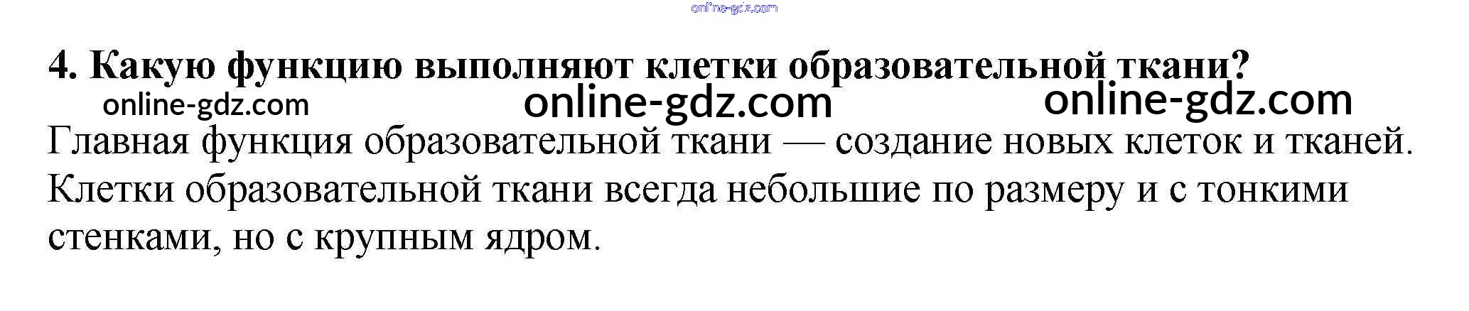 Готовые домашние задания по Биологии за 6 класс Учебник Пасечник Линейный курс 2020 - Вопросы §5. Ткани растений 4