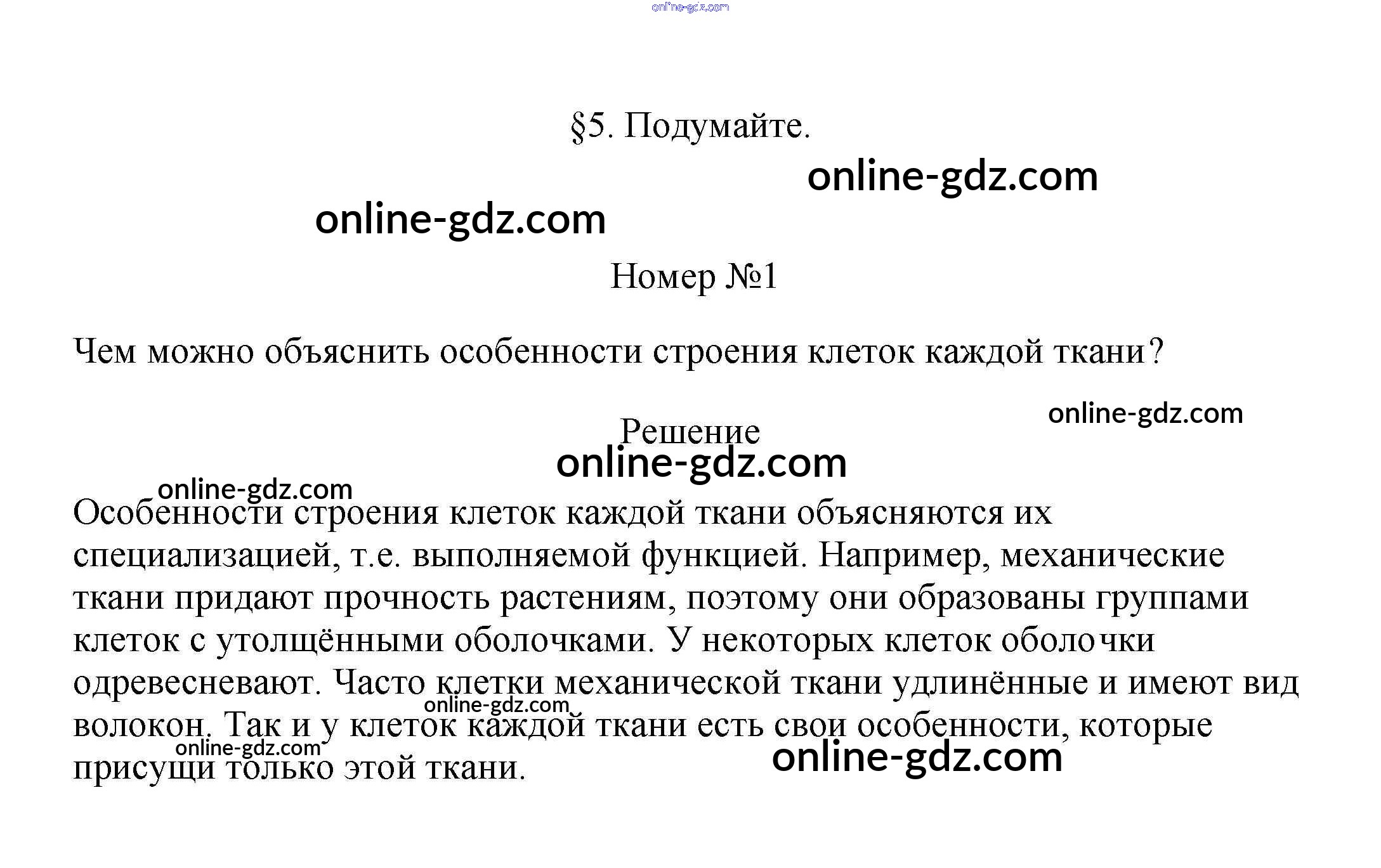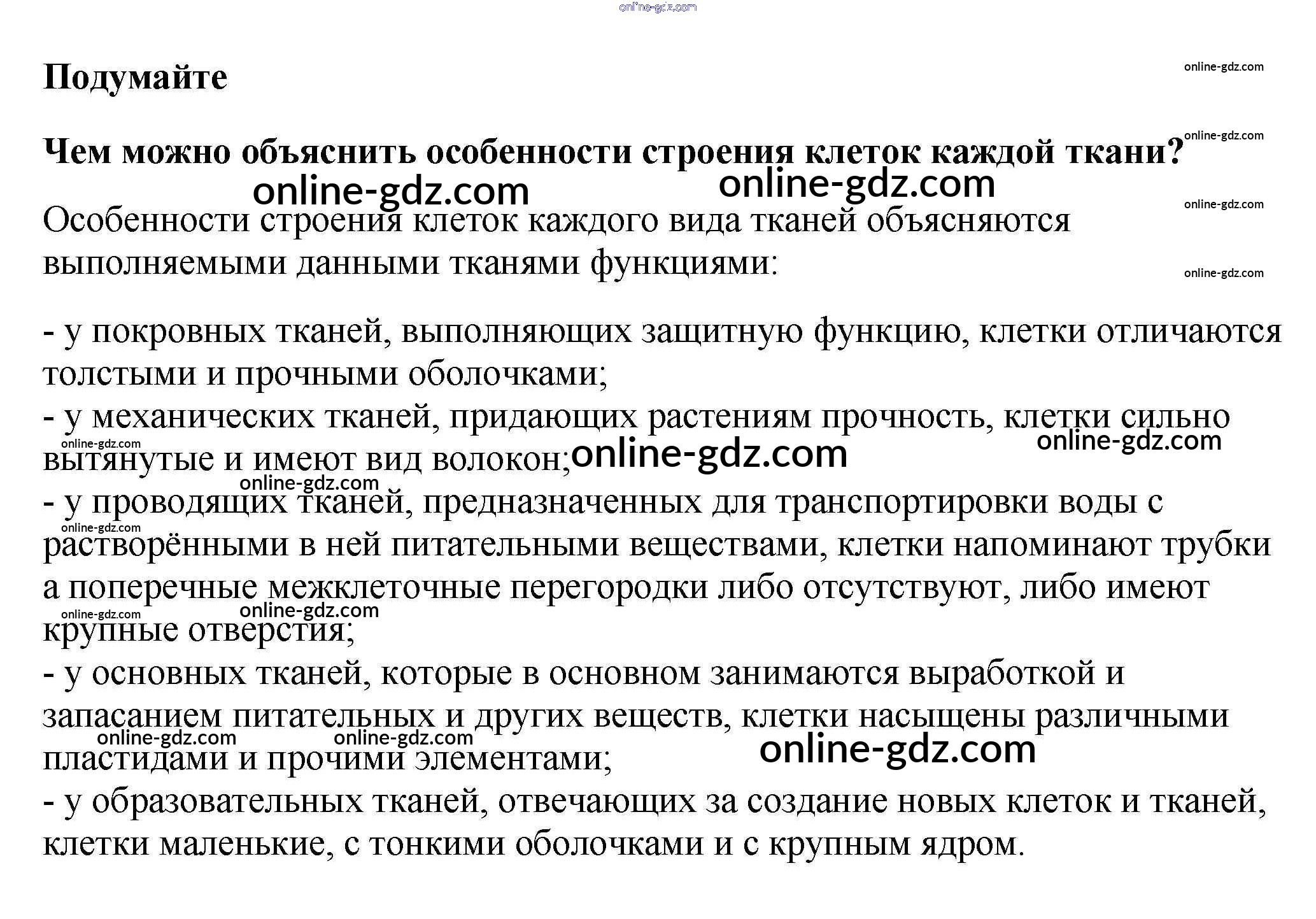 Готовые домашние задания по Биологии за 6 класс Учебник Пасечник Линейный курс 2020 - Подумайте §5. Ткани растений 1