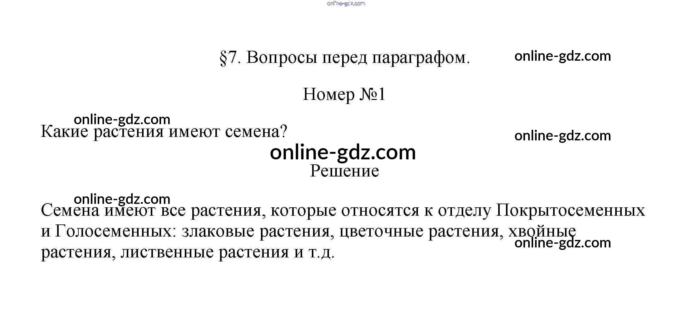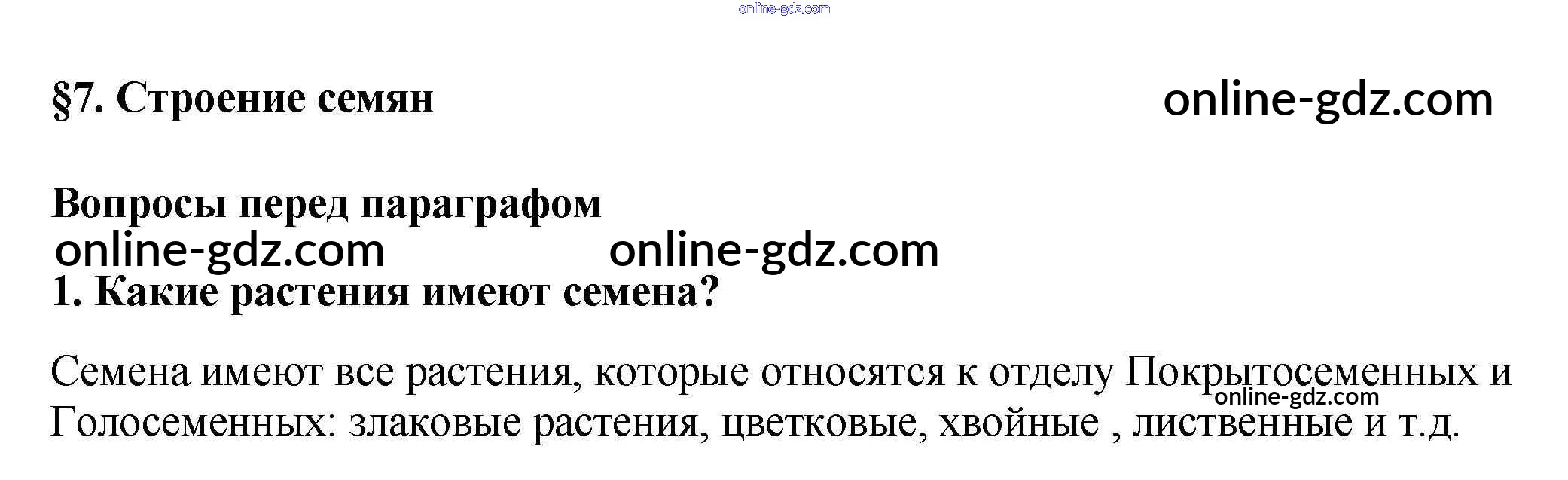 Готовые домашние задания по Биологии за 6 класс Учебник Пасечник Линейный курс 2020 - Вопросы перед параграфом §7. Строение семян 1