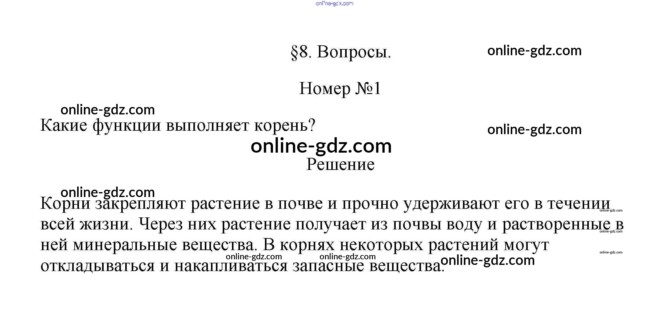 Готовые домашние задания по Биологии за 6 класс Учебник Пасечник Линейный курс 2020 - Вопросы §8. Виды корней и типы корневых систем 1
