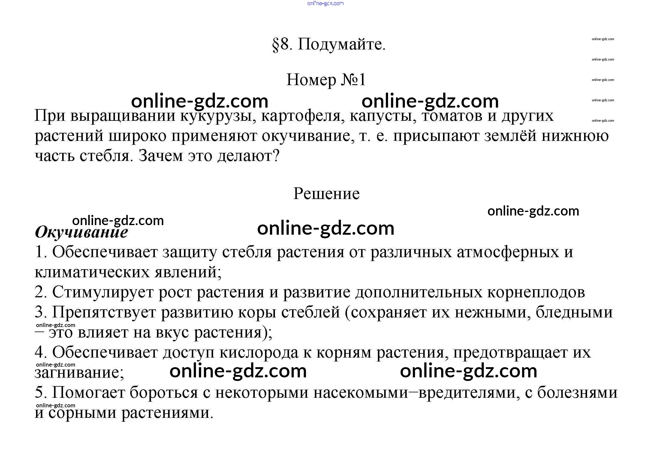 Готовые домашние задания по Биологии за 6 класс Учебник Пасечник Линейный курс 2020 - Подумайте §8. Виды корней и типы корневых систем 1