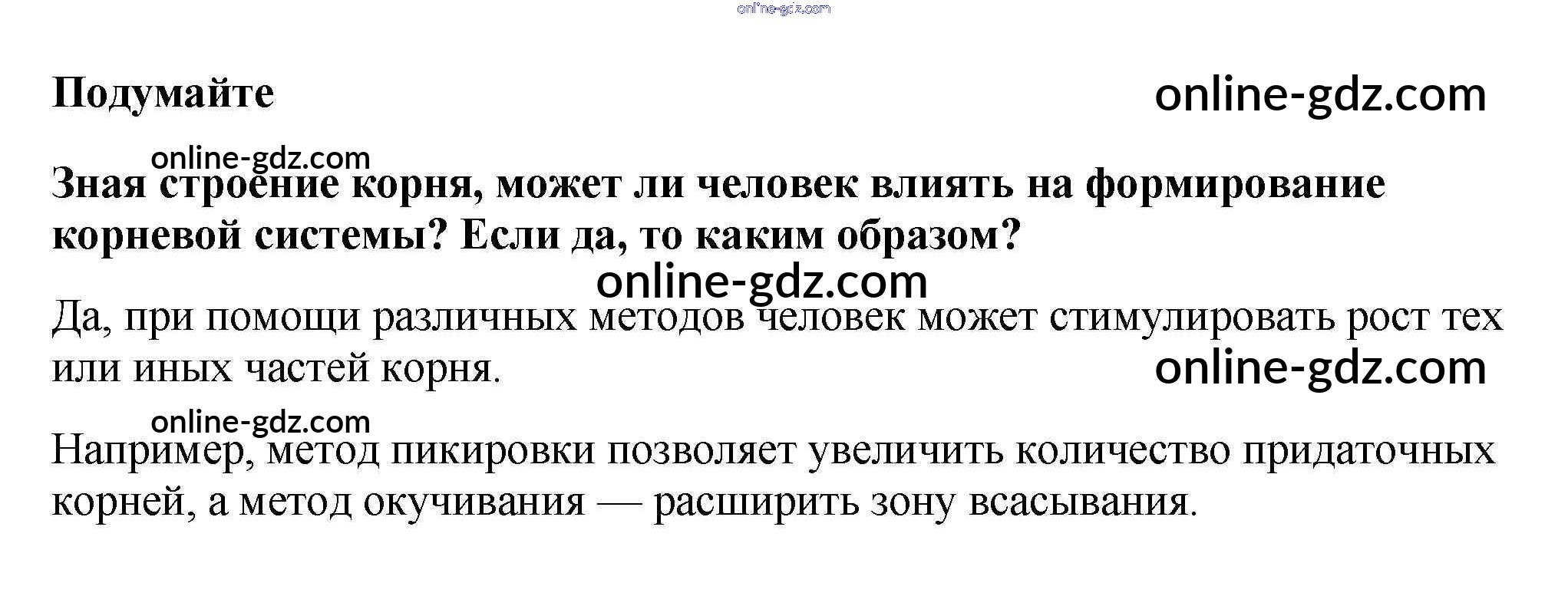 Готовые домашние задания по Биологии за 6 класс Учебник Пасечник Линейный курс 2020 - Подумайте §9. Зоны (участки) корня 1
