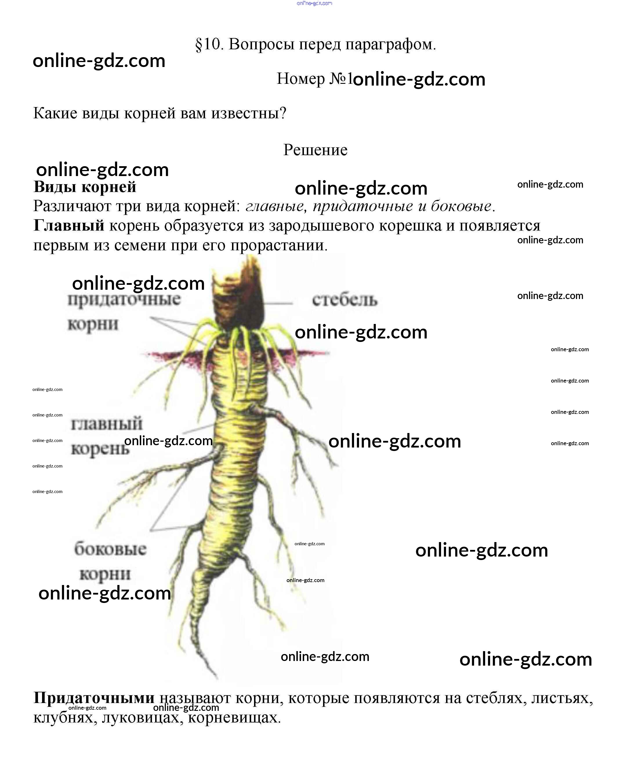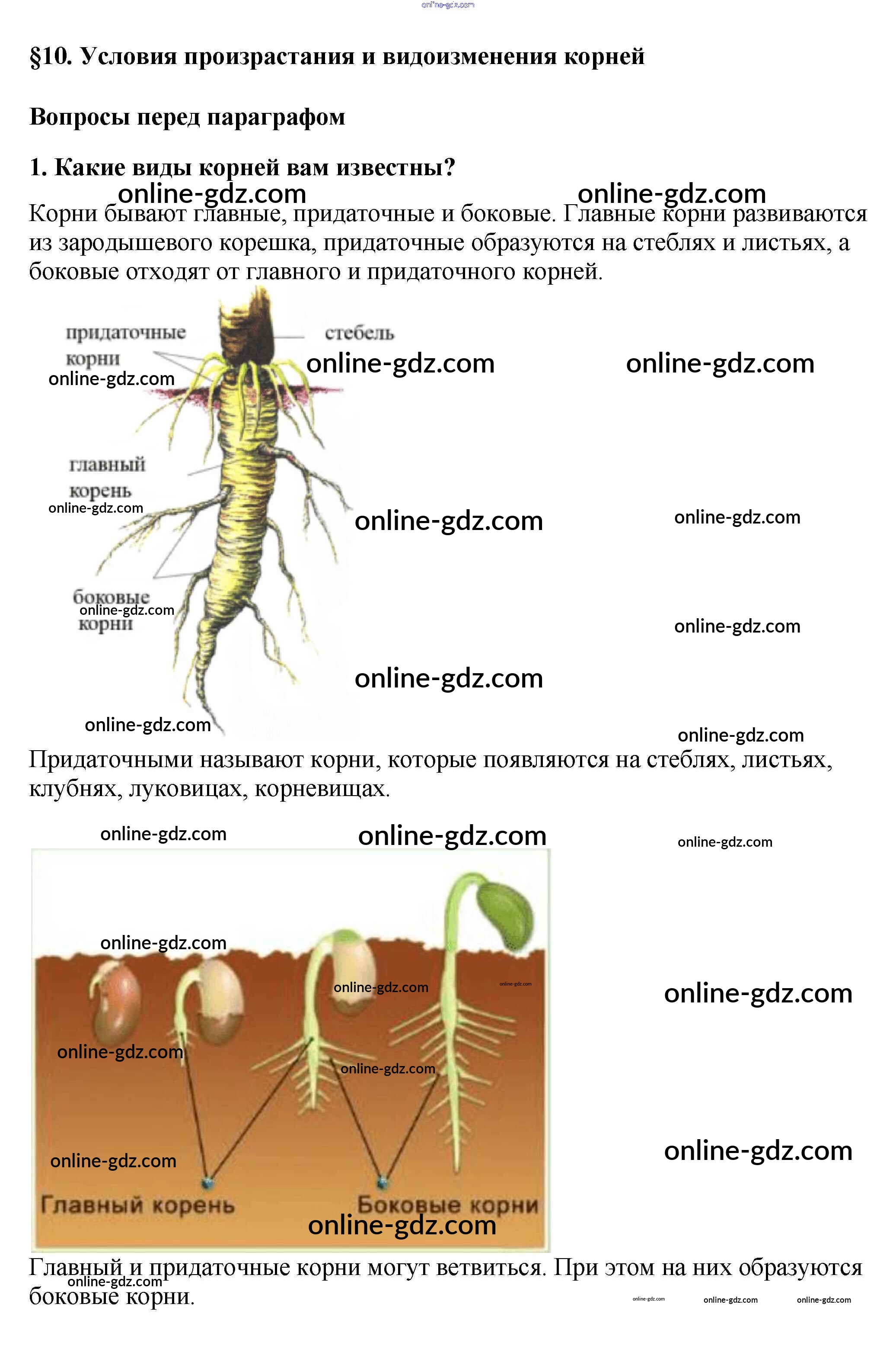 Готовые домашние задания по Биологии за 6 класс Учебник Пасечник Линейный курс 2020 - Вопросы перед параграфом §10. Условия произрастания и видоизменения корней 1