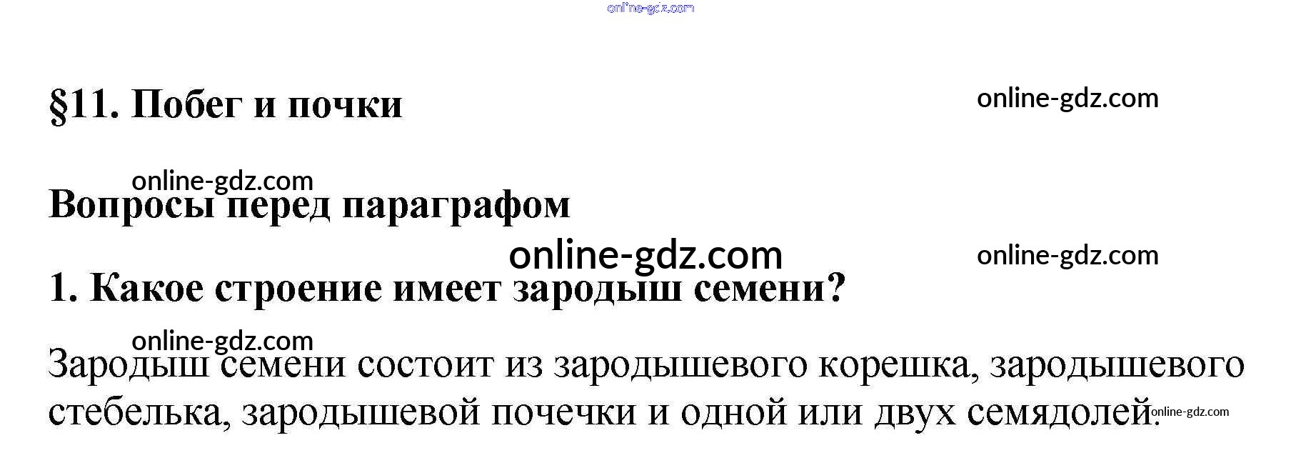 Готовые домашние задания по Биологии за 6 класс Учебник Пасечник Линейный курс 2020 - Вопросы перед параграфом §11. Побег и почки 1