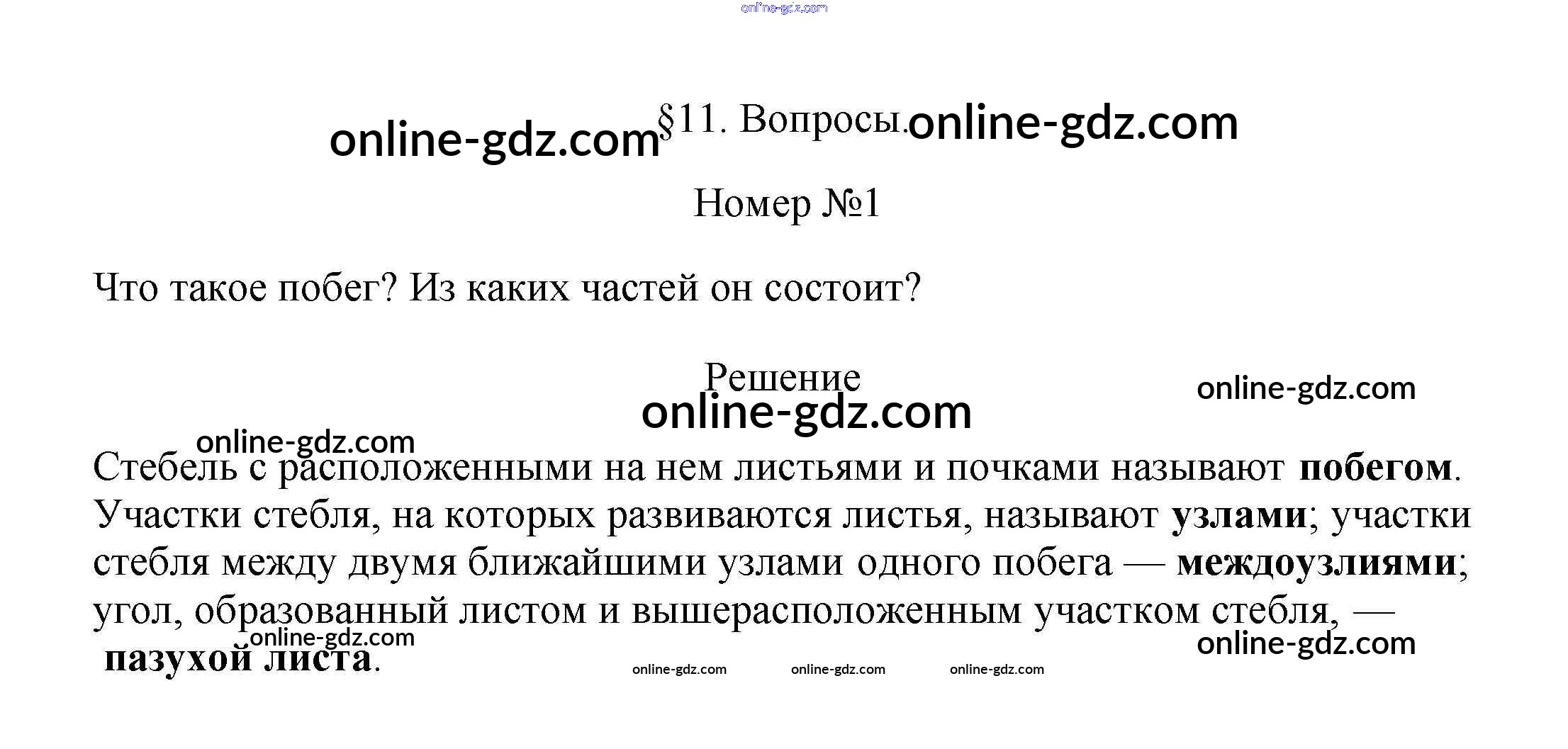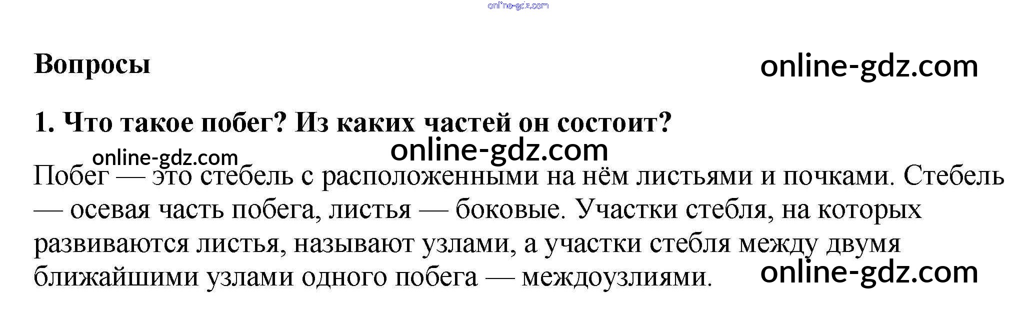 Готовые домашние задания по Биологии за 6 класс Учебник Пасечник Линейный курс 2020 - Вопросы §11. Побег и почки 1