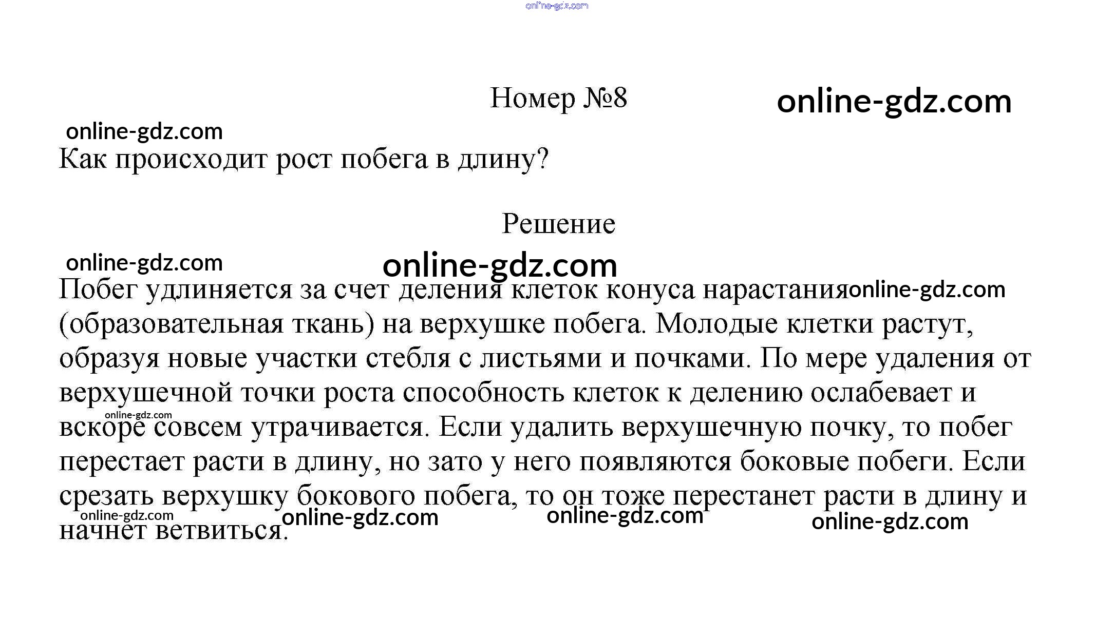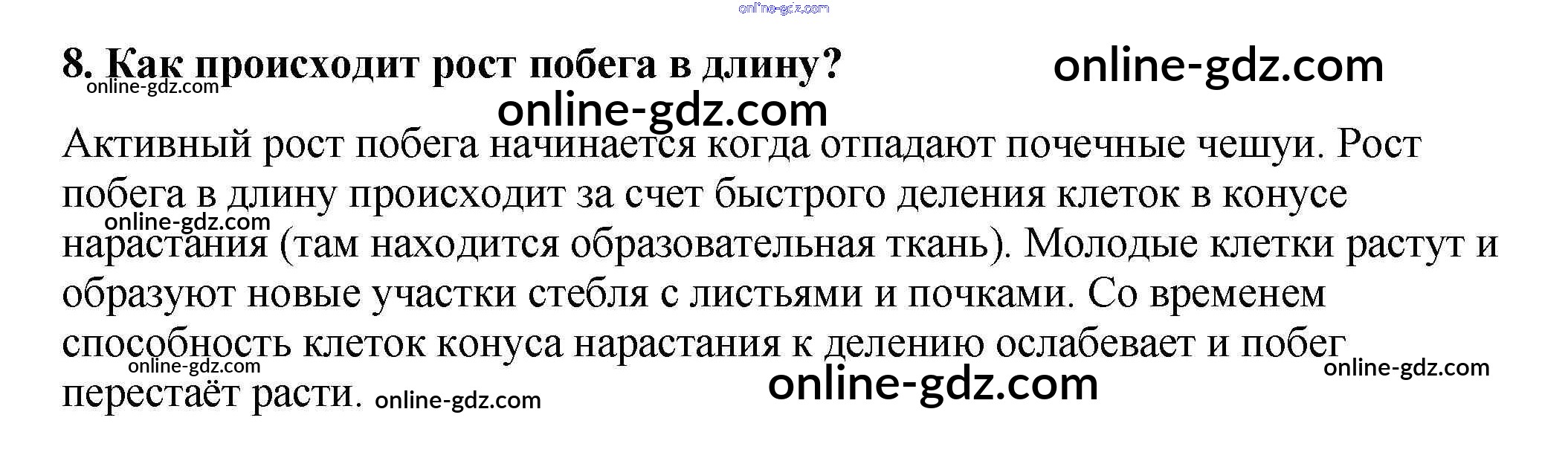 Готовые домашние задания по Биологии за 6 класс Учебник Пасечник Линейный курс 2020 - Вопросы §11. Побег и почки 8