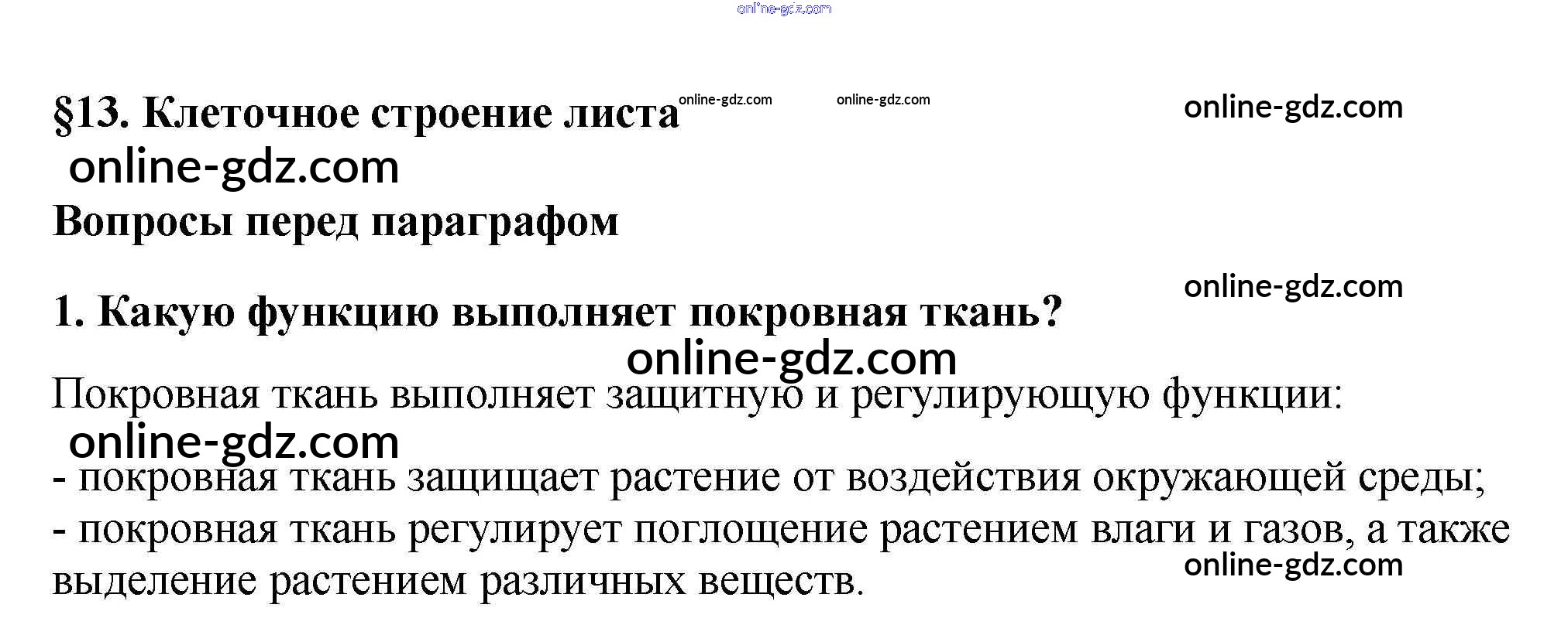 Готовые домашние задания по Биологии за 6 класс Учебник Пасечник Линейный курс 2020 - Вопросы перед параграфом §13. Клеточное строение листа 1