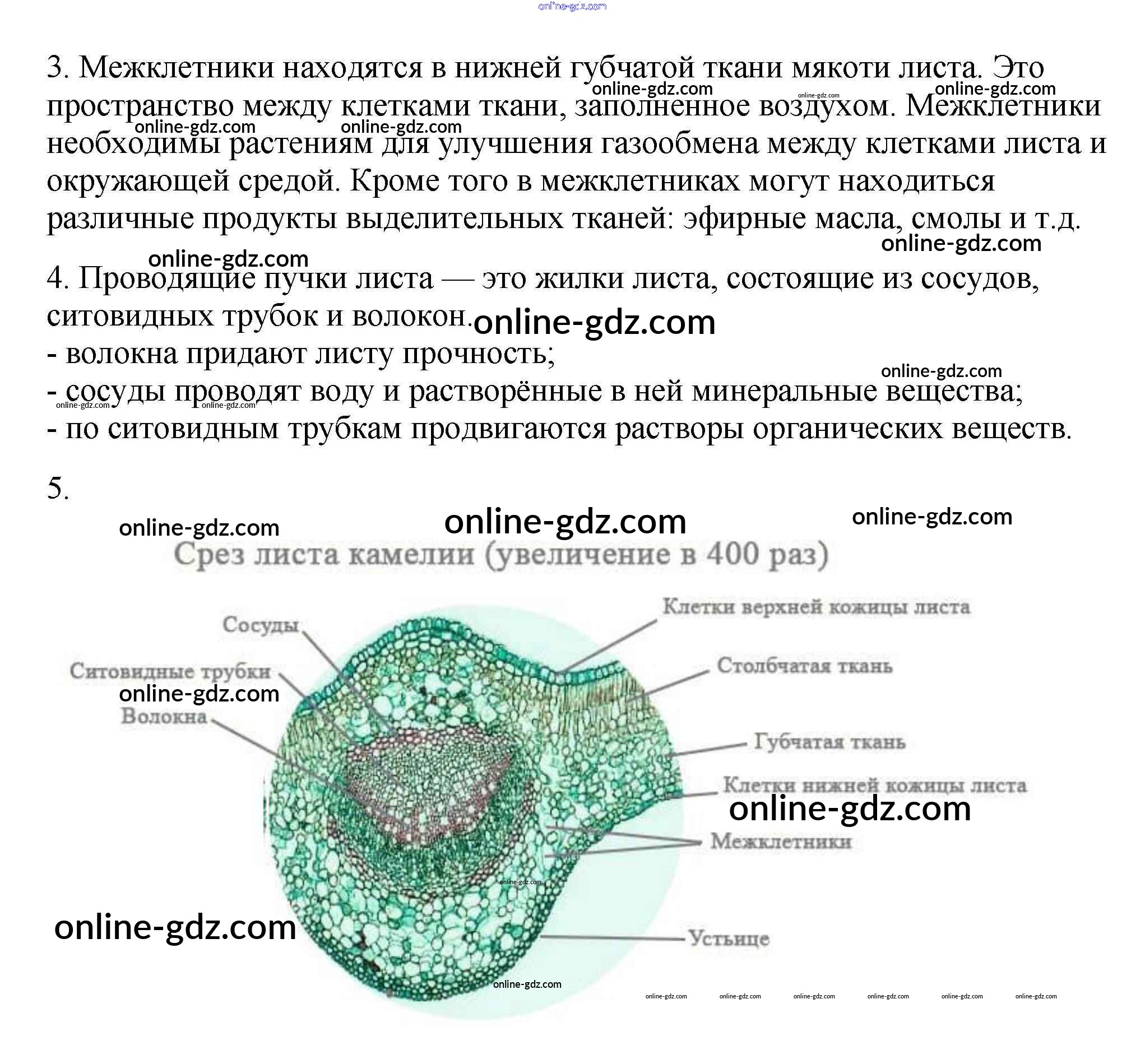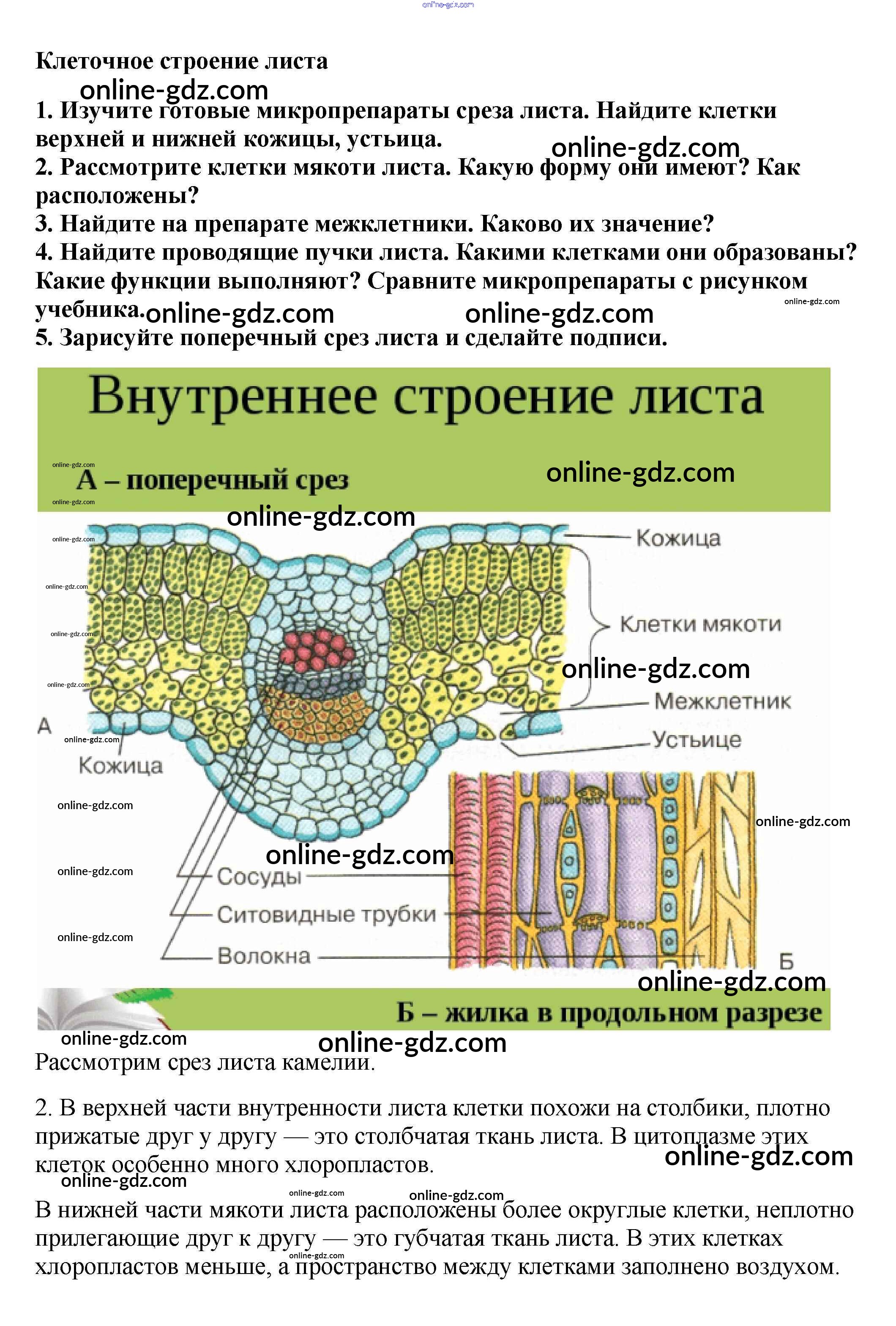 Готовые домашние задания по Биологии за 6 класс Учебник Пасечник Линейный курс 2020 - Клеточное строение листа §13. Клеточное строение листа 1